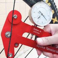 If you don’t want to take the bike to a shop or buy a tool to measure the tension, you can use the sound method to check tension. The tap-tap-tap ting-sound of spoke tuning is an easy thing to learn – you can hear the thud sound from a loose spoke. Give it a quarter turn and tap it again – all spokes should sound fairly close to the same. You also don’t want to over-tighten or you’ll pull the rim out of true. If you are able to measure with a tool, please click the link above for specs.